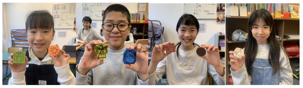 12月19日(金)の図工の時間、高学年の児童たちは、はんこ作りに挑戦しました。 まずは思い思いのデザインを考え、消し… 続きを読む: はんこ作り(高学年 図工)