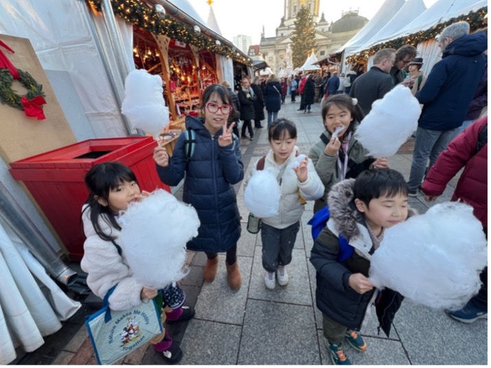 ワークショップ終了後は、施設内の食堂で昼食をとり、その後、近くのジャンダルメン・マルクトへ移動しました。グループごとにお菓子などを買い、街の雰囲気を楽しみながら、クリスマスの訪れを感じるひとときとなりました。