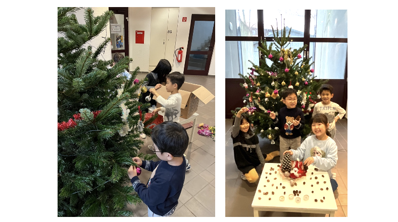 飾り付けされたツリーを見た他の学年の児童生徒や保護者の方々も、思わず「きれい!」「すてきだね」と声をかけながら通り、クリスマスの訪れを楽しみにしている様子が伝わってきました。アドベント・キャンドルには、来週から順番に灯りをともしていく予定です。