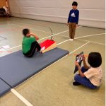 撮影は友達同士で行い、自分の後転の様子をその場で確認しました。「今はこうだったから、次はこうしてみよう」と、一人ひとりが毎回目標を持って取り組む姿が見られました。映像で振り返ることで、改善点がより具体的になり、意欲的に練習を重ねることができました。