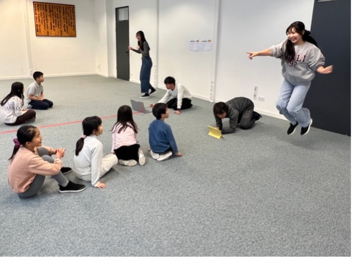 ジェスチャーゲームでは、スポーツや動物の名前を当てる課題に挑戦しました。身ぶり手ぶりを工夫しながら伝え合い、正解が出るたびに歓声が上がるなど、学年をこえて楽しい時間を過ごすことができました。