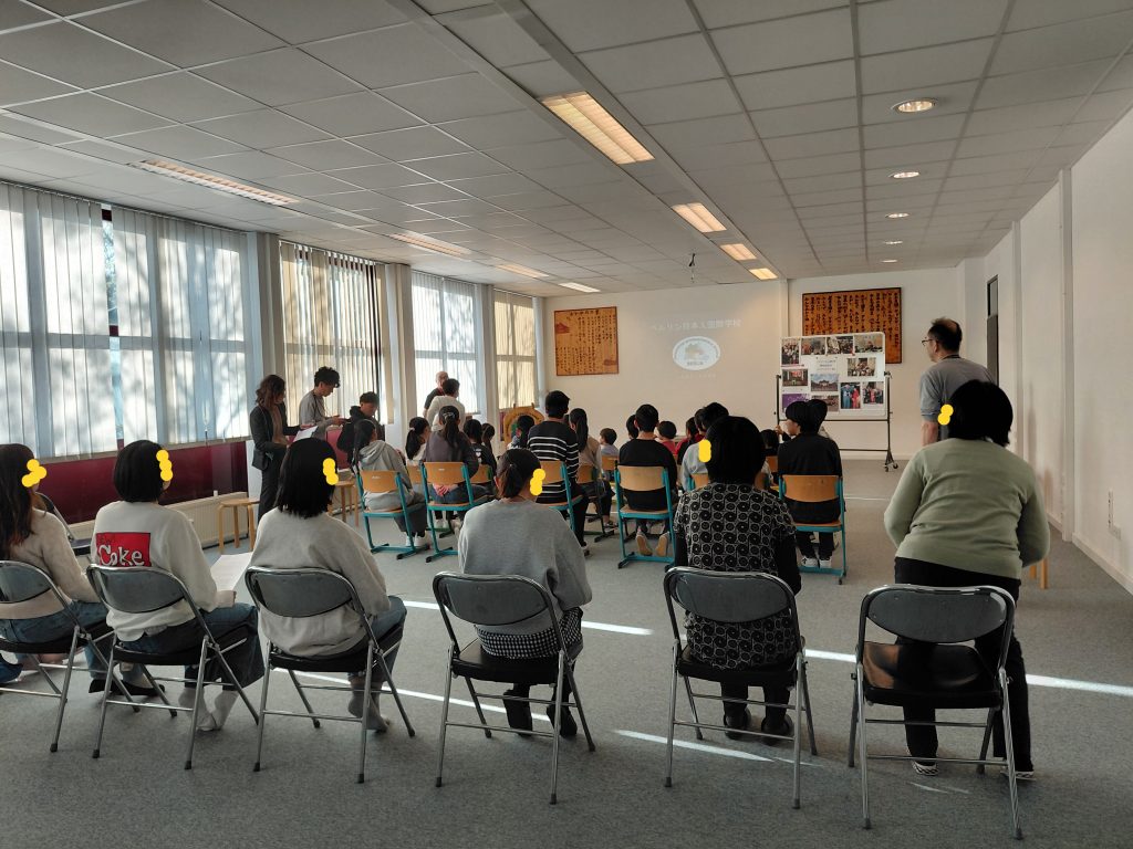 講師は、O事務局長です。1993年開校以来、ベルリン日本人国際学校に携わってこられたO事務局長のお話はとても意味深いものでした。ベルリンの壁崩壊を目の当たりにし、やむを得ない二度の移設、その道のりは決して平たんではなかったと強く感じました。私たちは、子供たちも含めて、その苦労のうえに立っていること、自分のためだけじゃなく、感謝とかそんなことをかみしめて生きることの大切さを感じました。またいつものO事務局長のステキな笑顔は、「Oさん、Oさん」と子供たちが親しみを込めて呼ぶO事務局長の笑顔は、たくさんの苦労を重ねたからこその笑顔なんだと思いました。子どもたち、たくさん苦労して、失敗して、そしてそれを乗り越えて、Oさんみたいなステキな笑顔の大人になりましょうね。そして90日かけてシベリア鉄道で国を越えましょうね。また、参加いただいた保護者の皆様、ありがとうございました。