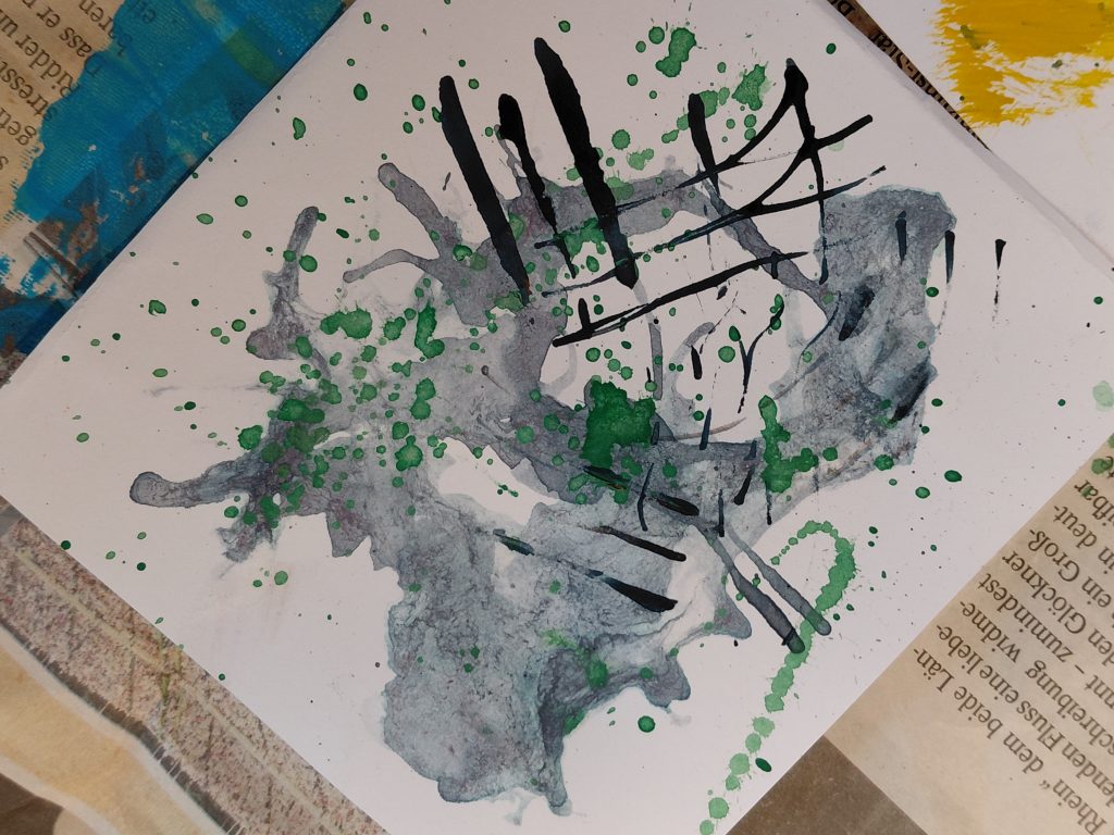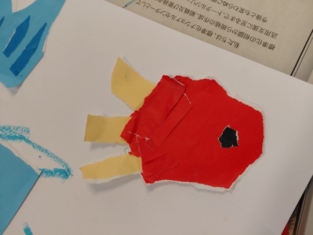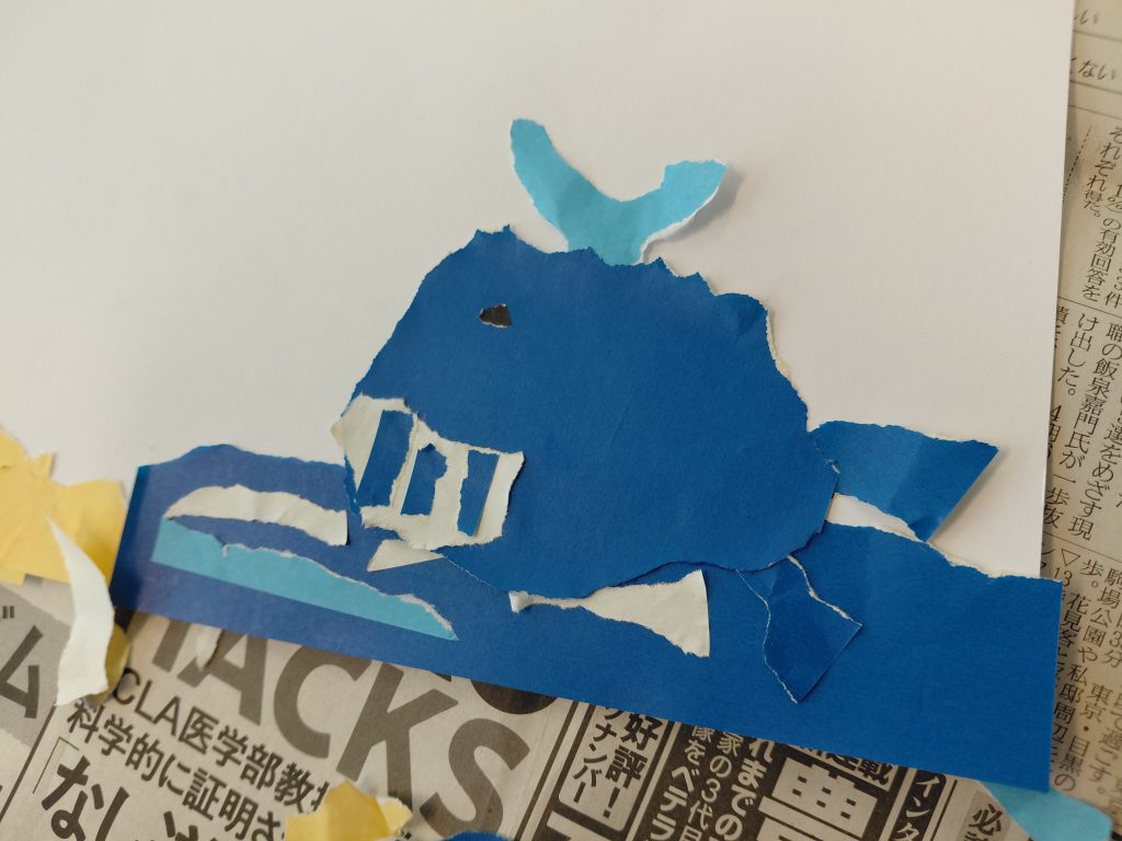 1・2年生、新学期、”初めて”の図画工作、「やぶいたかたちからうまれたよ」の授業です。新聞紙をちぎり、色紙をちぎり、何に見えるか、イメージを膨らましながら、最後は画用紙いっぱいに貼り付けて、ステキな作品が出来上がりました。