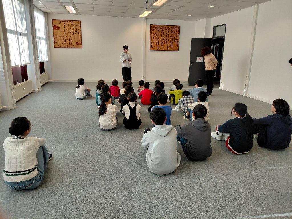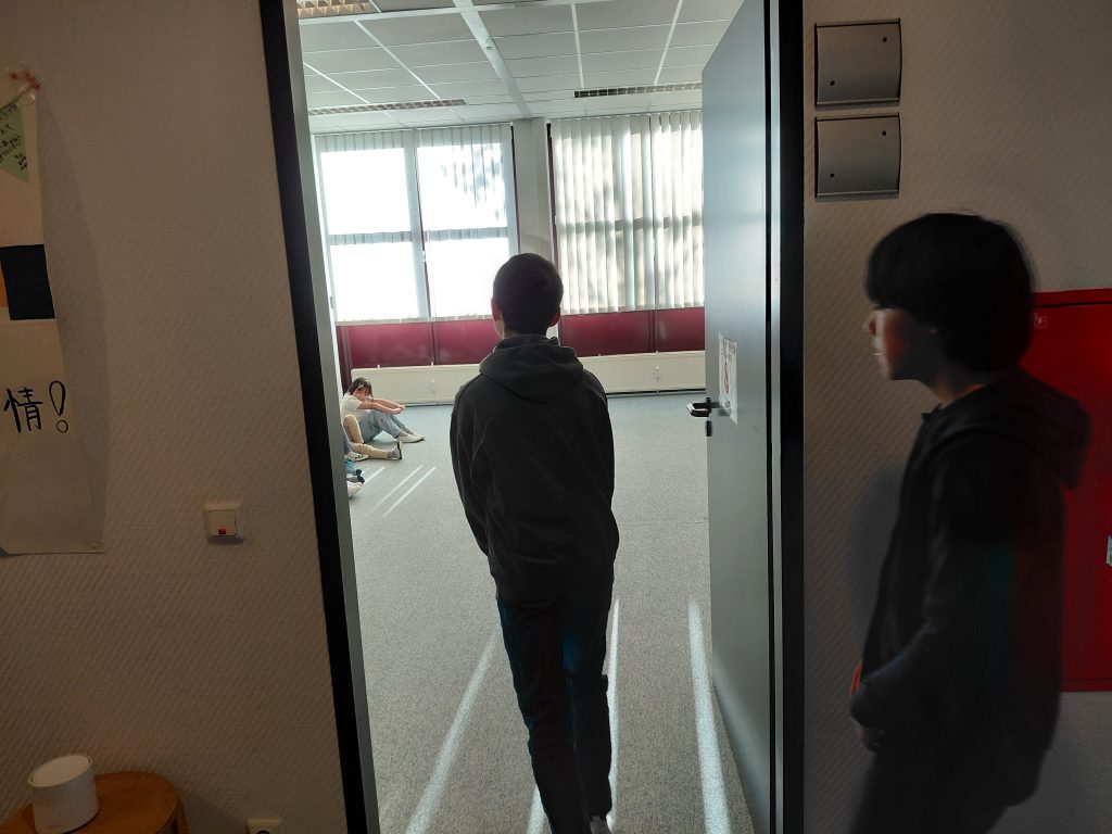 ベルリン日本人学校の子どもたちは、全校集会で多目的室に入るとき、一礼をして入室します。