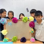 11月6日(木)の中学年の図工の時間に、学校祭で飾るウエルカムボードづくりを行いました。キラキラの紙を背景にして、色とりどりの花を作り、まわりを華やかに飾りました。左上には、青い紙で大きく「絆(きずな)」の文字を形づく […]
